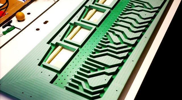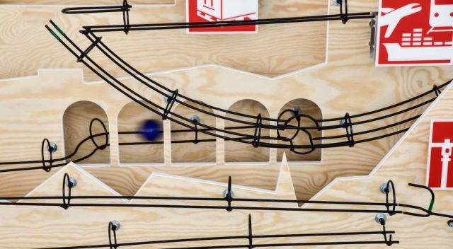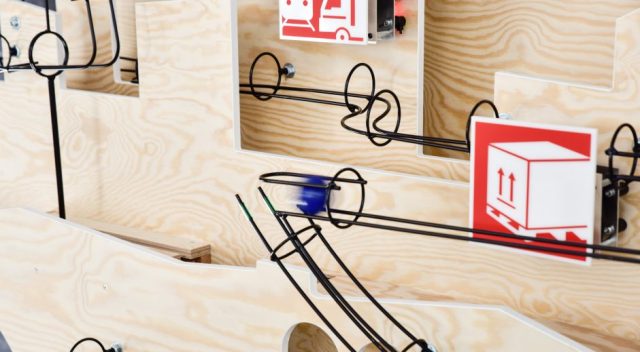 Die Kooglebaan kommt auf Messen und Veranstaltungen als teaser und Gesprächseröffner zum Einsatz. Diese Kugelbahn ist eine Gemeinschaftsproduktion von Kooglebaan mit Frank Fietzek.